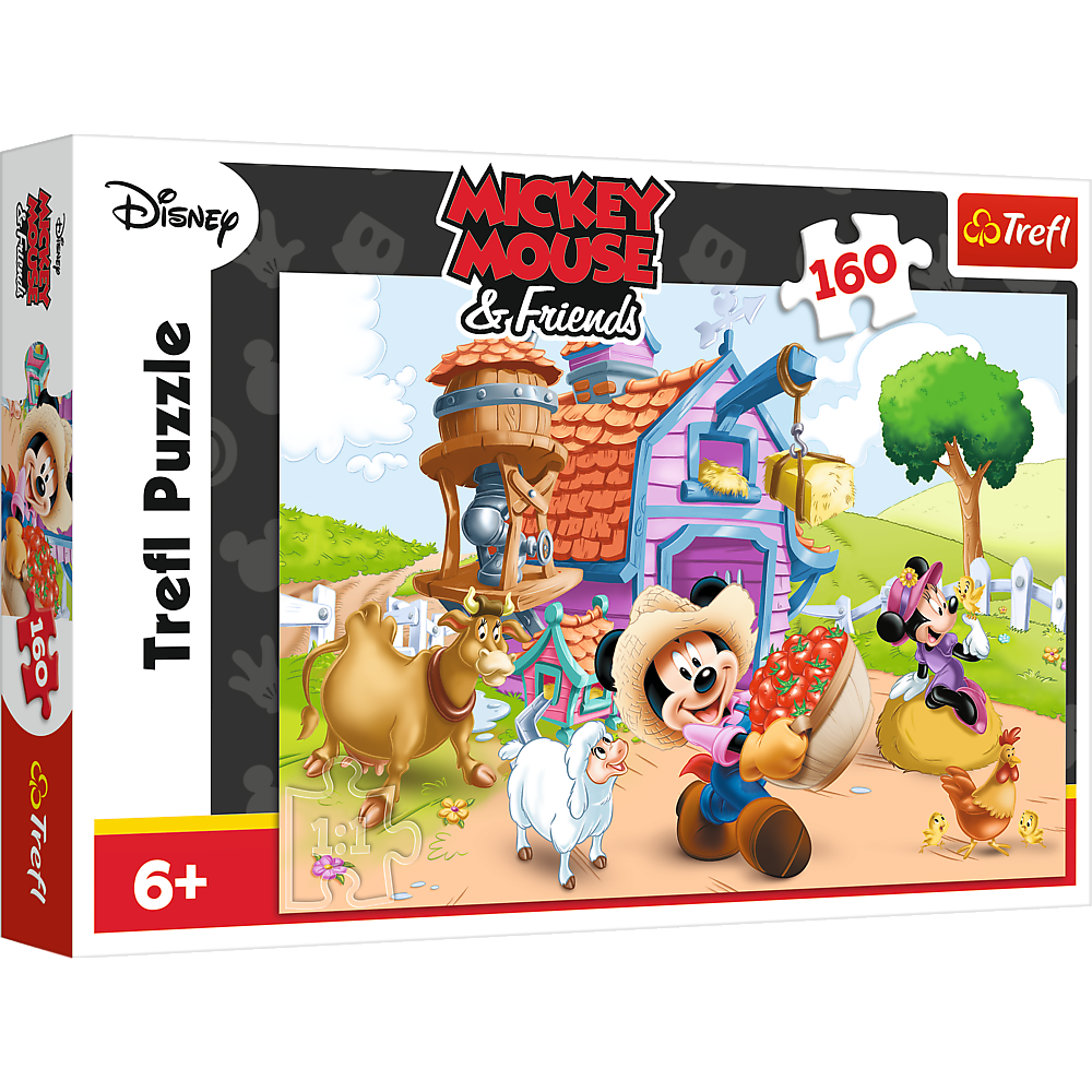 Puzzle 160 elementów z Mikim i jego przyjaciółmi. Po ułożeniu powstanie obrazek o wymiarach 41x27,8 cm. Wysoką jakość, nasycenie kolorów i bezpieczeństwo układania zapewnia kalandrowany papier odbijający światło i wykorzystanie materiałów ekologicznych.