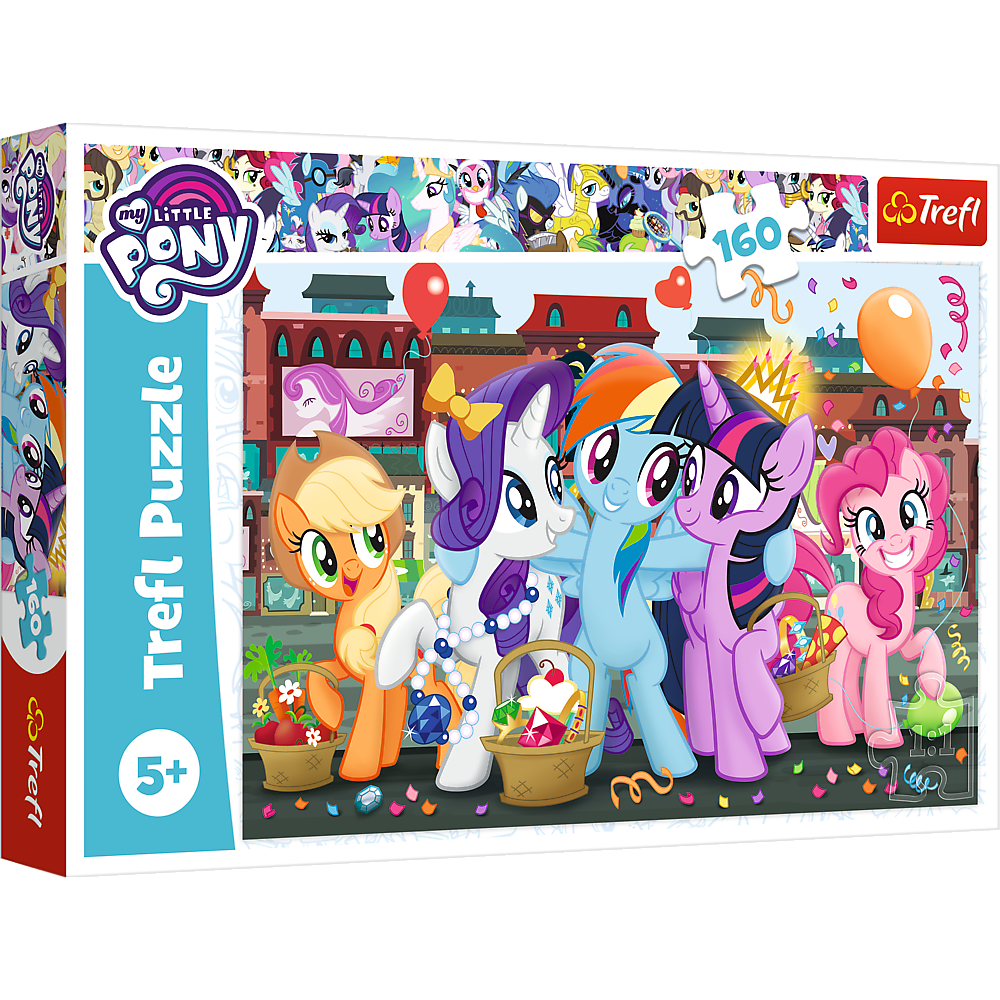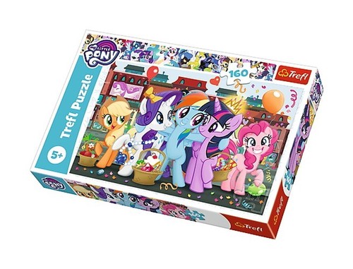 Puzzle 160 elementów z obrazkiem przedstawiającym kucyki. Po ułożeniu powstanie obrazek o wymiarach 27,8x41 cm. Wysoką jakość, nasycenie kolorów i bezpieczeństwo układania zapewnia kalandrowany papier odbijający światło i wykorzystanie materiałów ekologicznych.