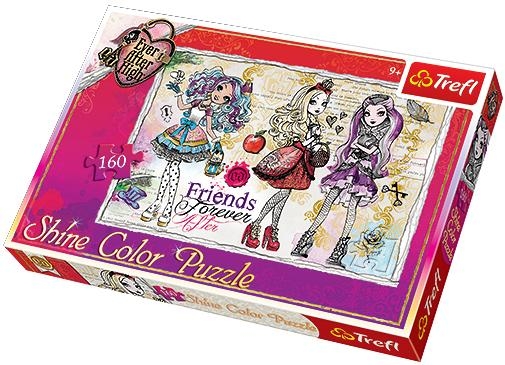 Uczennice z Ever After High - Puzzle Shine Color Puzzle 160 elementów z bohaterkami serialu ""Ever After High"". Po ułożeniu powstanie obrazek o wymiarach 41x27,8cm. Shine Color Puzzle to bohaterowie ulubionych bajek w nowej, lśniącej odsłonie!