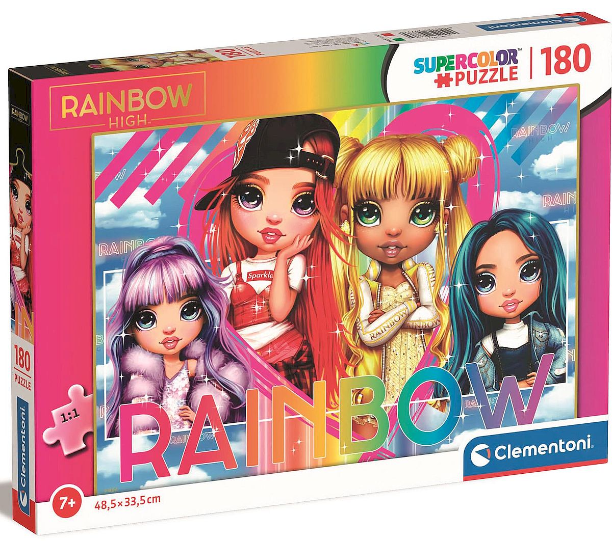 Puzzle Clementoni składające się z 180 elementów, motyw Rainbow High.