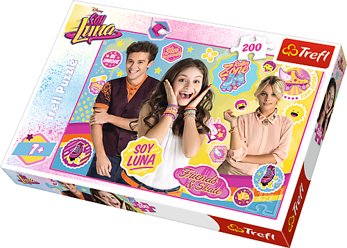 Puzzle 200 elementów z bohaterami serialu "Soy Luna". Po ułożeniu powstanie obrazek o wymiarach 48x34 cm. Wysoką jakość, nasycenie kolorów i bezpieczeństwo układania zapewnia kalandrowany papier odbijający światło i wykorzystanie materiałów ekologicznych.