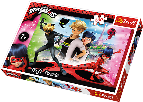Puzzle 200 elementów z bohaterami filmu "Miraculous Ladybug". Po ułożeniu powstanie obrazek o wymiarach 48x34 cm. Wysoką jakość, nasycenie kolorów i bezpieczeństwo układania zapewnia kalandrowany papier odbijający światło i wykorzystanie materiałów ekologicznych.