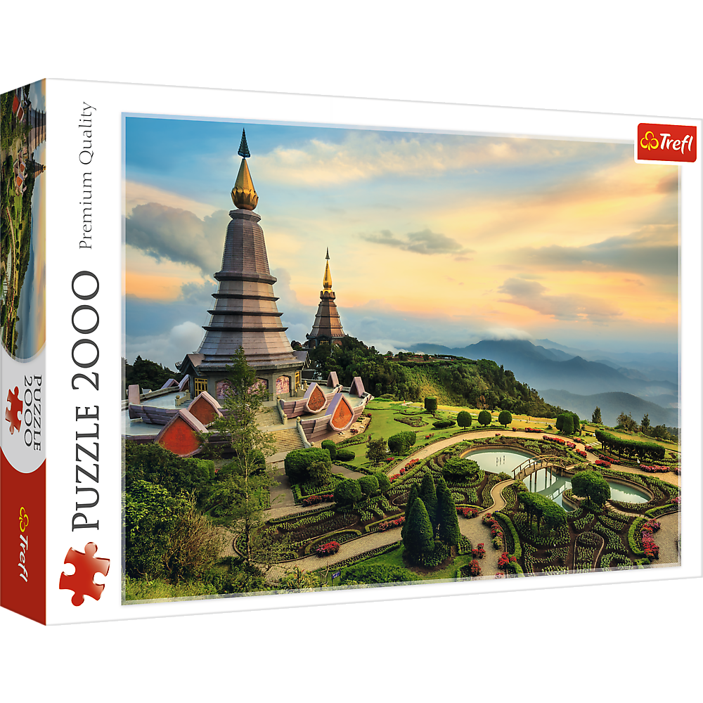Puzzle 2000 elementów z widokiem na miasto Chiang Mai w Tajlandii. Po ułożeniu powstanie obrazek o wymiarach 96x68 cm. Wysoką jakość, nasycenie kolorów i bezpieczeństwo układania zapewnia kalandrowany papier odbijający światło, pokryty ekologicznymi farbami spożywczymi.