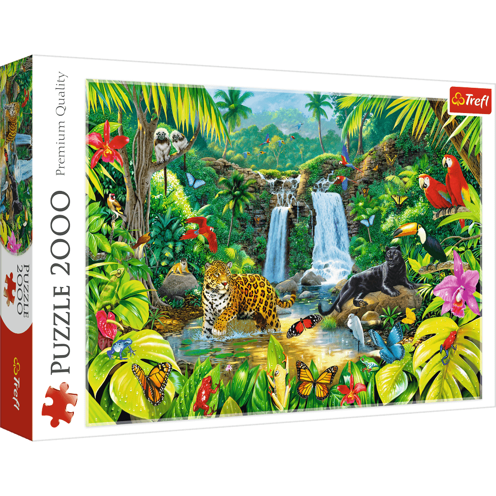 Puzzle składające się z 2000 elementów przedstawiające widok na tropikalny las. Po ułożeniu powstanie obraz o wymiarach 961x682 mm. Produkt został wykonany z wysokiej jakości materiałów, z zastosowaniem specjalnego kalandrowanego papieru odbijającego światło, co ułatwia układanie. Produkt został wyprodukowany w Polsce, a do produkcji zostały użyte materiały ekologiczne.