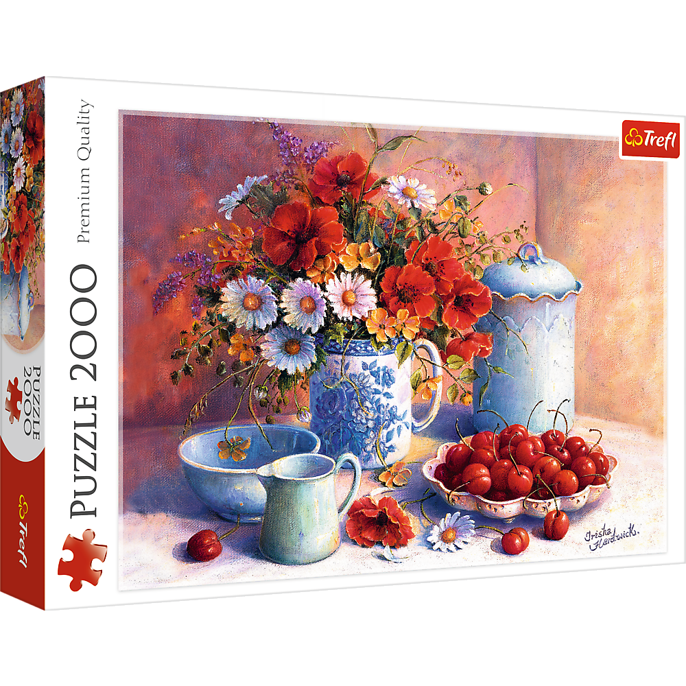 Puzzle 2000 elementów Słodkie popołudnie. Po ułożeniu powstanie obrazek o wymiarach 96x68 cm. Wysoką jakość, nasycenie kolorów i bezpieczeństwo układania zapewnia kalandrowany papier odbijający światło, pokryty ekologicznymi farbami spożywczymi.