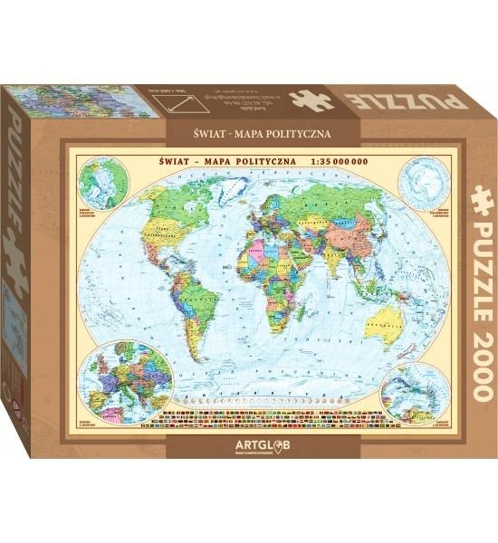 Puzzle z aktualną mapą polityczną świata, mogą pełnić rolę zarówno edukacyjną, jak i zabawową.