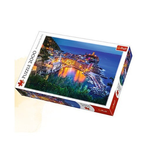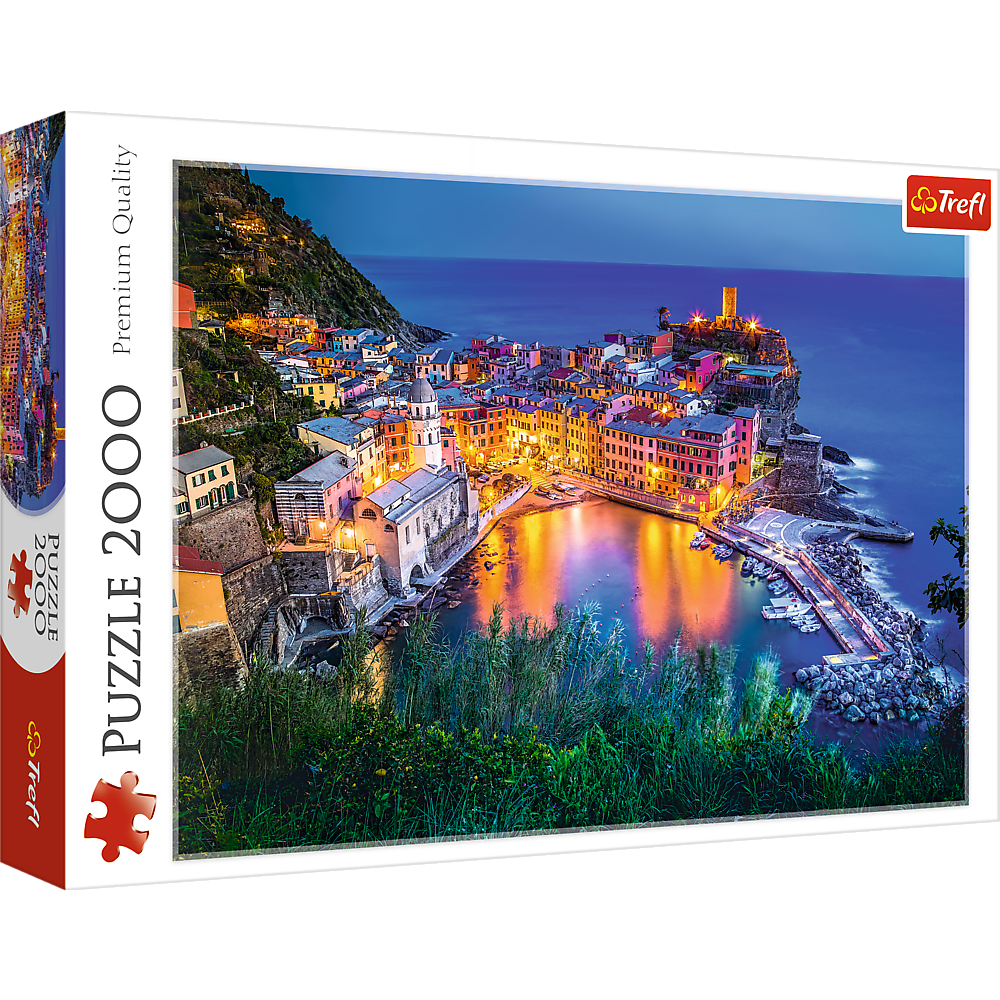 Puzzle 2000 elementów z widokiem na malowniczą włoską miejscowość Vernazza. Po ułożeniu powstanie obrazek o wymiarach 96x68 cm. Wysoką jakość, nasycenie kolorów i bezpieczeństwo układania zapewnia kalandrowany papier odbijający światło, pokryty ekologicznymi farbami spożywczymi.
