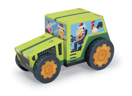 Zestaw puzzli z wizerunkiem traktora. Zestaw zawiera również kartonowe figurki, idealne do samodzielnego zabawy w kreatywnego rolnika.