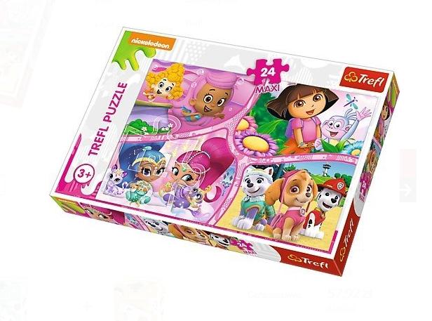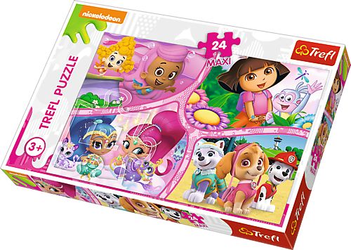 Puzzle stworzone specjalnie z myślą o dzieciach powyżej 3 roku życia. Układankę tworzą 24 bardzo duże puzzlowe elementy, dzięki czemu dzieci poradzą sobie z samodzielnym ułożeniem obrazka. Zabawa rozwija zdolności manualne, spostrzegawczość i daje radość samodzielnego tworzenia. Piękna grafika z bohaterami kreskówek znanych z Nickelodeon sprawi radość każdemu dziecku.