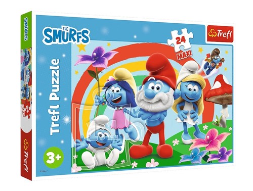 Smerfny dzień to puzzle dla maluchów, składające się z 24 bardzo dużych elementów. Zostały zaprojektowane z myślą o małych fanach bajki Smerfy. Po ułożeniu układanki powstanie duży obrazek o wymiarach 600x400 mm.