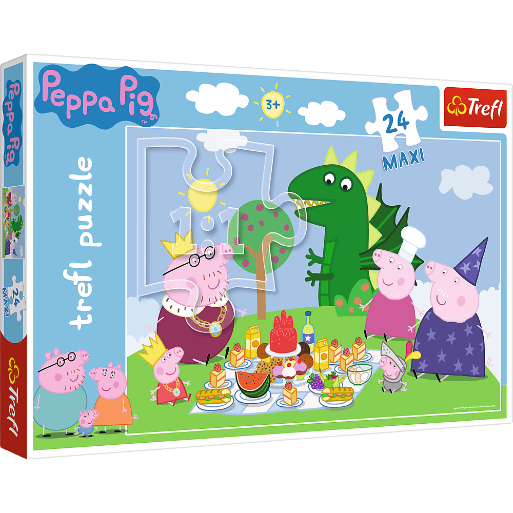 Puzzle stworzone specjalnie z myślą o dzieciach powyżej 3. roku życia. Układankę tworzą 24 bardzo duże puzzlowe elementy, dzięki czemu młodsze dzieci poradzą sobie z samodzielnym ułożeniem obrazka. Zabawa rozwija zdolności manualne, spostrzegawczość i daje radość samodzielnego tworzenia. Kolorowa grafika ze Świnką Peppą sprawi radość małym miłośnikom tej popularnej bajki.