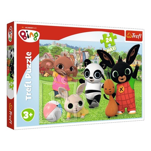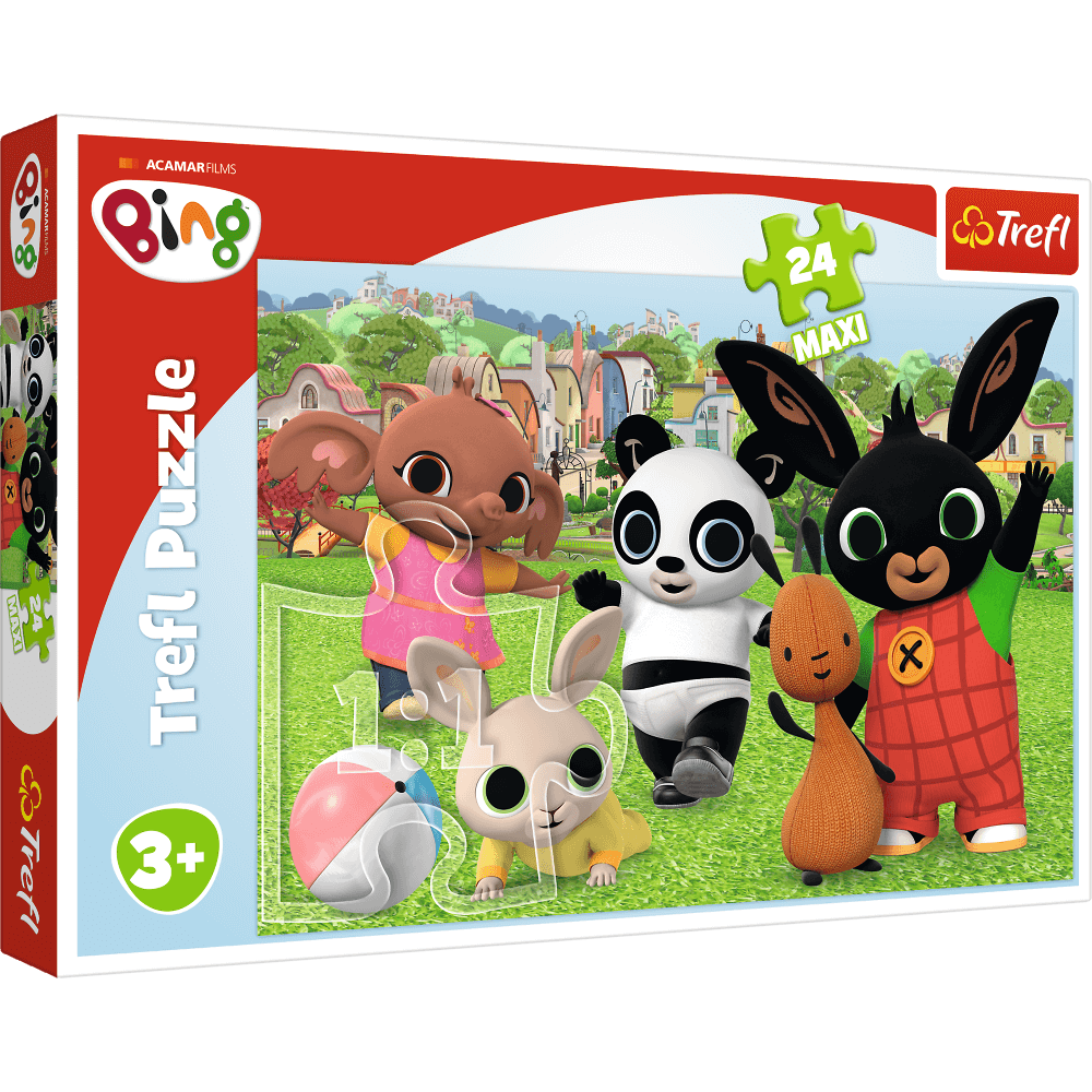 Puzzle składające się z 24 bardzo dużych elementów, zaprojektowaną z myślą o wszystkich fanach i fankach bajki Bing. Po ułożeniu układanki powstanie duży obrazek, o wymiarach 600x400mm.