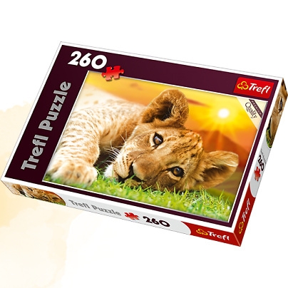 LwiątkoPuzzle 260 elementów z obrazkiem słodkiego lwiątka. Po ułożeniu powstanie obrazek o wymiarach 60x40cm. Wysoką jakość, nasycenie kolorów i bezpieczeństwo układania zapewnia kalandrowany papier odbijający światło i wykorzystanie materiałów ekologicznych.