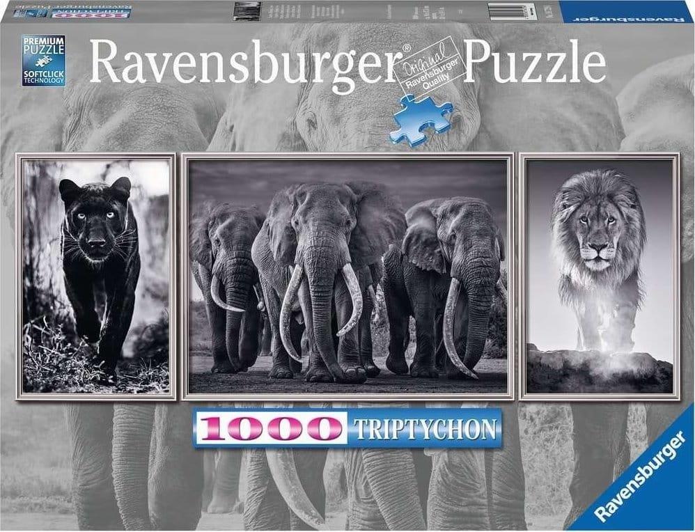 Puzzle 1000 elementów Ravensburger z motywem: czarno-białe zwierzakiPo ułożeniu puzzle mają wymiary 70 x 50 cmSą przeznaczone dla osób powyżej 14. roku życia.