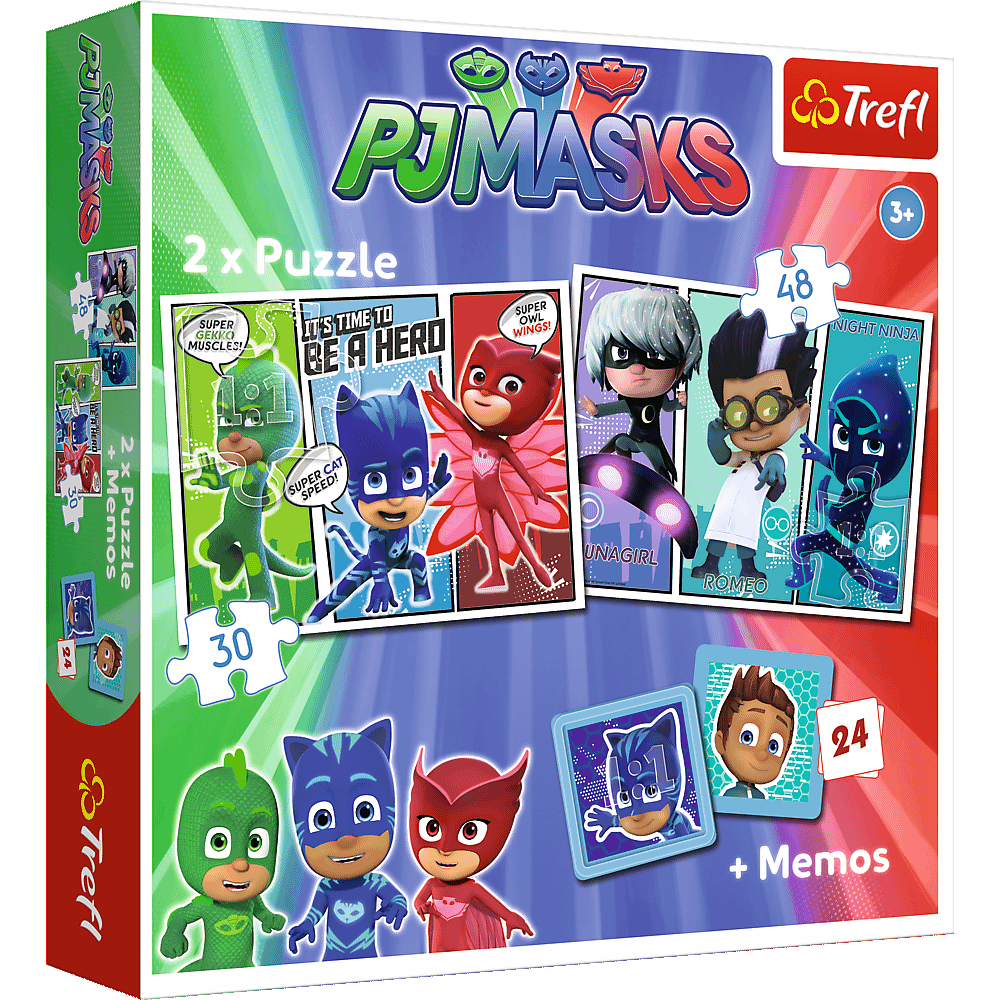 Podwójna radość układania! Puzzle 2w1 "Nocni wojownicy" to dwie układanki różnej wielkości z obrazkami przedstawiającymi bohaterów filmu animowanego Pidżamersi. Zestaw doskonale spełnia oczekiwania rodzeństwa - każdy ułoży swój ulubiony obrazek nawet w tym samym czasie. Zróżnicowana liczba elementów pozwala na zabawę zarówno młodszym, jak i nieco starszym dzieciom. Dodatkowym urozmaiceniem zabawy są karty memo z postaciami bajki.