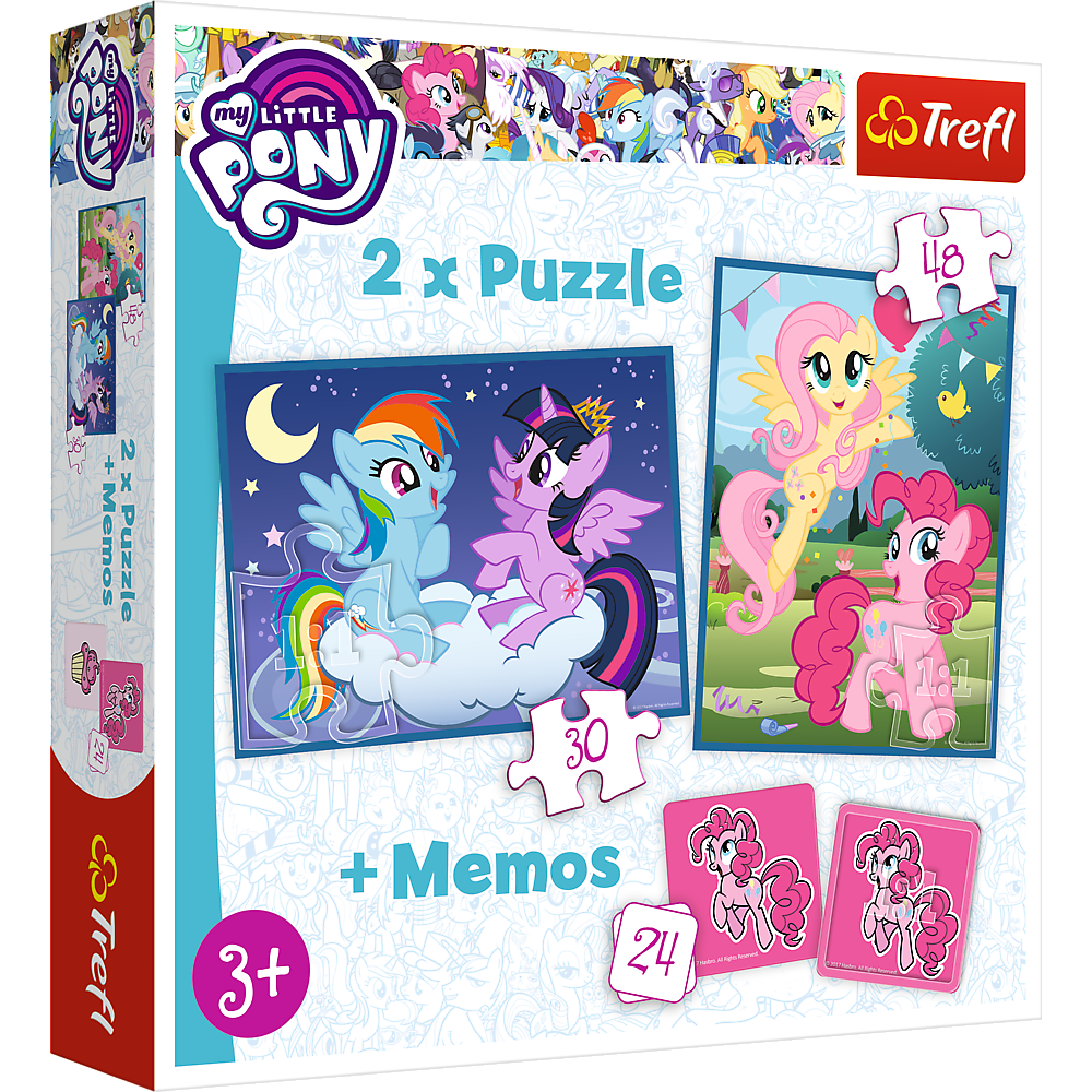 Podwójna radość układania! Puzzle 2w1 "Przyjaźń to magia" to dwie układanki różnej wielkości z obrazkami przedstawiającymi bohaterów filmu animowanego My Little Pony. Zestaw doskonale spełnia oczekiwania rodzeństwa - każdy ułoży swój ulubiony obrazek nawet w tym samym czasie. Zróżnicowana liczba elementów pozwala na zabawę zarówno młodszym, jak i nieco starszym dzieciom. Dodatkowym urozmaiceniem zabawy są karty memo z postaciami bajki.