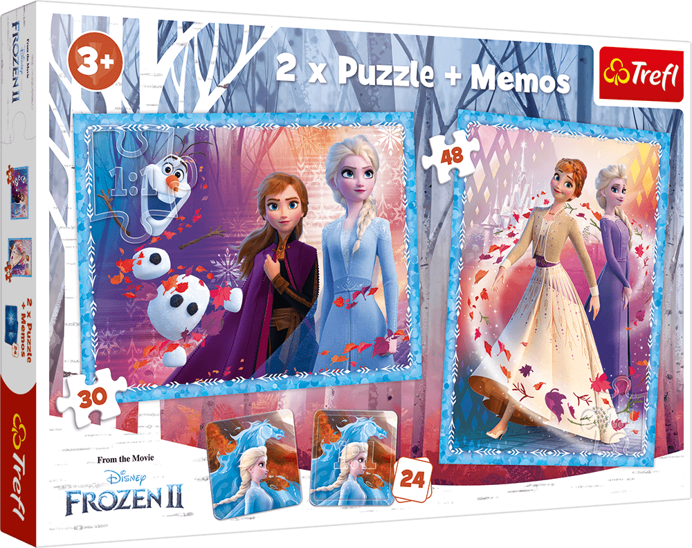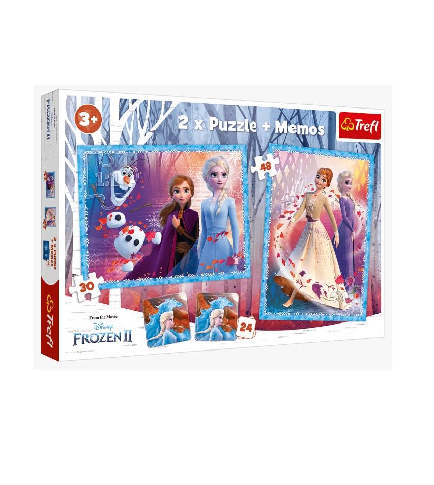 Puzzle z bohaterami filmu animowanego Frozen 2 (Karina Lodu 2). Po ułożeniu powstanie obrazek o wymiarach 20x27 cm. Wysoką jakość, nasycenie kolorów i bezpieczeństwo układania zapewnia kalandrowany papier odbijający światło, pokryty ekologicznymi farbami spożywczymi. Sprawdź swoją pamięć! Zagraj w "Memos - Kraina lodu"! Popularna gra pamięciowa teraz dostępna jest w niezwykłym wydaniu graficznym. Na 60 kartonikach znajdziesz aż 30 obrazków z bohaterami filmu Disneya "Kraina lodu", które musisz połączyć w pary. Gra kończy się w momencie, gdy wszystkie pary zostaną odnalezione.