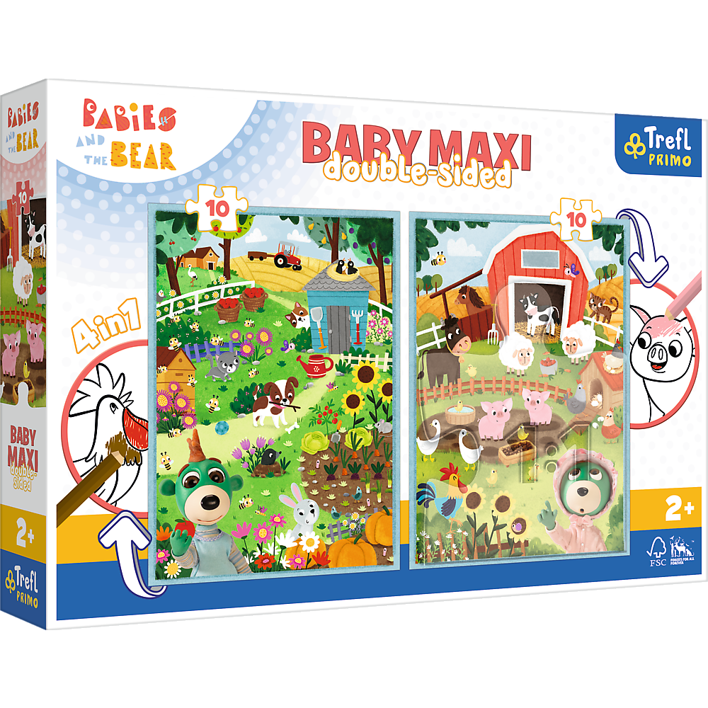 Na rewersie układanki znajduje się duża kolorowanka z ulubionymi bohaterami ze znanych dzieciom animacji. Zabawa Puzzlami Baby Maxi wspiera kreatywność i zdolności manualne dziecka.