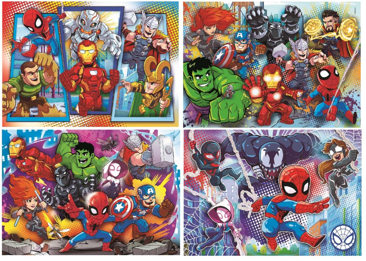 Puzzle SuperColor Clementoni towarzyszą dziecku w każdej fazie jego wzrostu, pomagając mu rozwijać zręczność manualną i zmysł obserwacji. Jakość materiałów i wyjątkowa technika druku gwarantują, że ilustracje bedą zawsze piękne, żywe i błyszczące, a zabawa nigdy się nie znudzi. Do ułożenia bohaterowie Marvela: dwa obrazki po 60 elementów oraz dwa po 20 elementów. Wymiary obrazka po ułożeniu: 27 x 19 cm Wiek 3+