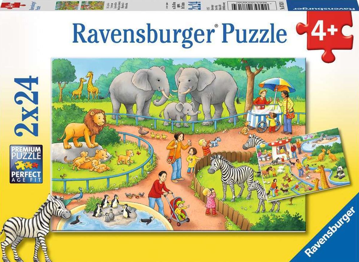 Puzzle 2x24 elementów Ravensburger składają się z 2 układanek po 24 elementy przedstawiających zwierzęta w zoo.