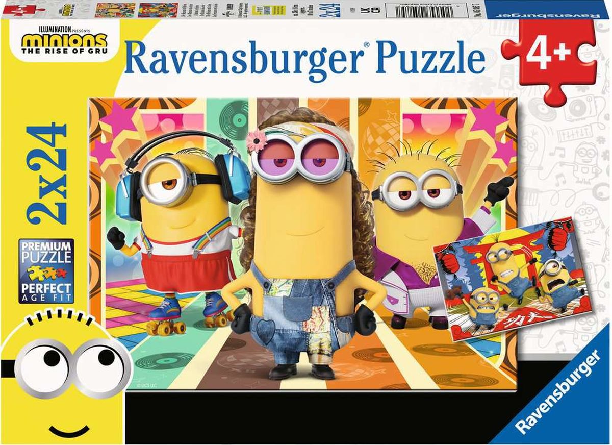 Puzzle 2x24 elementów Ravensburger składają się z 2 układanek po 24 elementy przedstawiających bohaterów bajki Minionki.