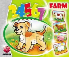 Puzzle dla dzieci, które dopiero rozpoczynają przygodę ze światem puzzli i układanek. Opakowanie zawiera 5 obrazków przedstawiających zwierzęta z farmy, które różnią się między sobą ilością elementów: od 3 do 7.Wiek: od 3 lat.