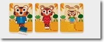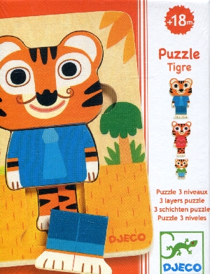 Trójwarstwowe drewniane puzzlle Rodzina Tygrysków. Na drewnianej tabliczce należy kolejno ułożyć: małego tygryska, mamę tygryska i tatę tygryska. Kolejna propozycja znanej firmy Djeco pozwalająca poprzez naukę zachęcić dzieci do nauki spostrzegawczości. Wiek: 18 m + Materiał : drewno