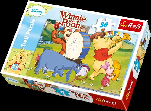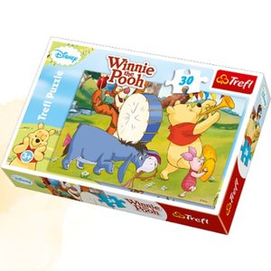 Puzzle 30 elementów z bohaterami uwielbianej przez dzieci bajki o Kubusiu Puchatku. Po ułożeniu powstanie obrazek o wymiarach 27x20cm. Wysoką jakość, nasycenie kolorów i bezpieczeństwo układania zapewnia kalandrowany papier odbijający światło i wykorzystanie materiałów ekologicznych. Puzzle oparte na licencji Disneya.
