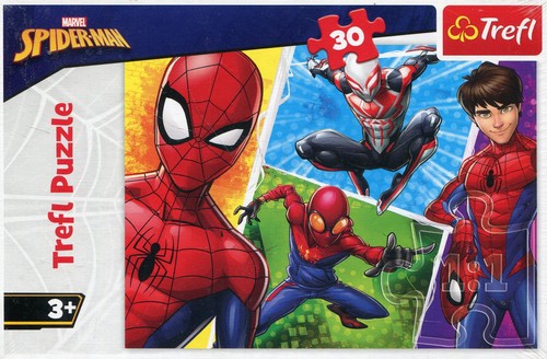Puzzle 30 elementów z postaciami filmu animowanego Spiderman. Po ułożeniu powstanie obrazek o wymiarach 27x20 cm. Wysoką jakość, nasycenie kolorów i bezpieczeństwo układania zapewnia kalandrowany papier odbijający światło, pokryty ekologicznymi farbami spożywczymi.