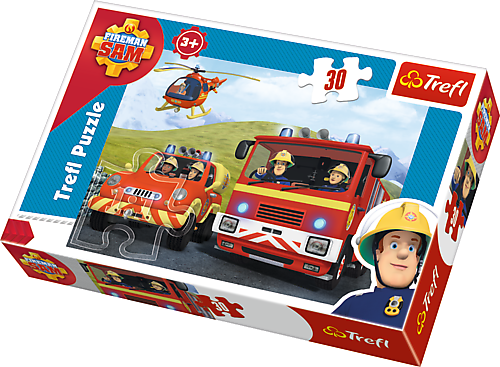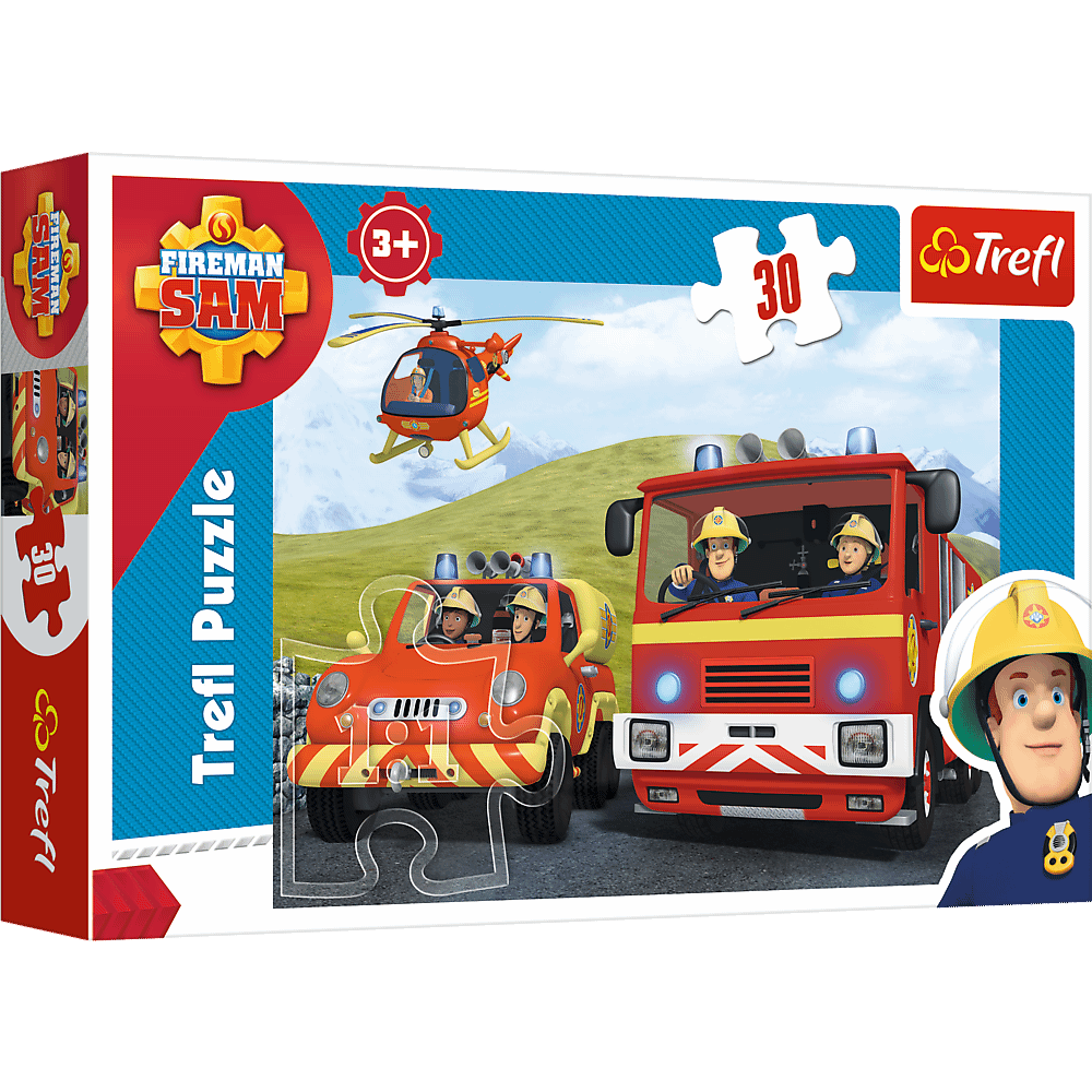 Puzzle 30 elementów z bohaterami serialu "Strażak Sam". Po ułożeniu powstanie obrazek o wymiarach 27x20 cm. Wysoką jakość, nasycenie kolorów i bezpieczeństwo układania zapewnia kalandrowany papier odbijający światło, pokryty ekologicznymi farbami spożywczymi.