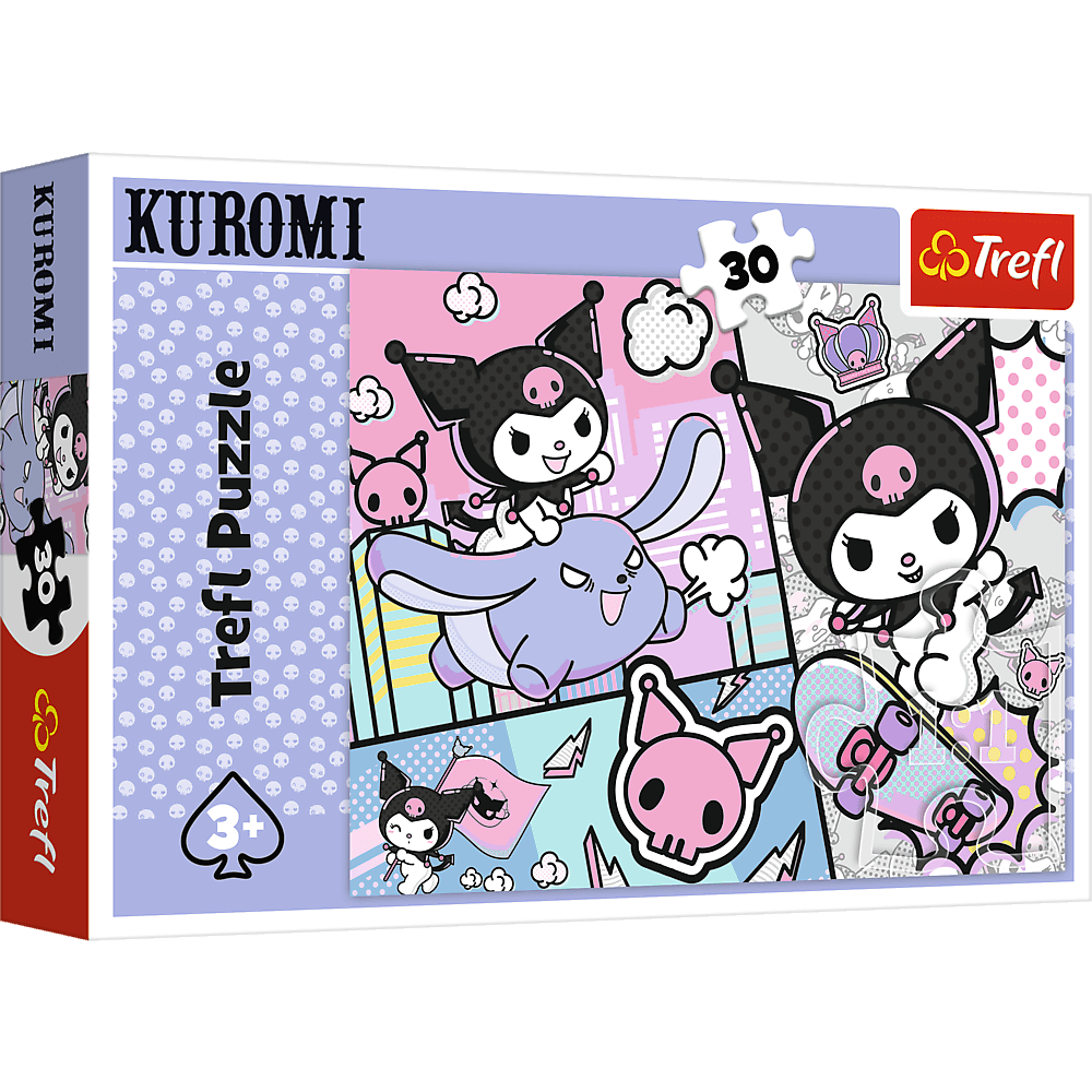 Zabawy z Kuromi to puzzle składające się z 30 elementów, zaprojektowane z myślą o małych fanach Kuromi. Po ułożeniu układanki powstanie obrazek o wymiarach 270x200 mm.