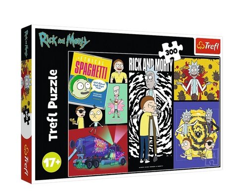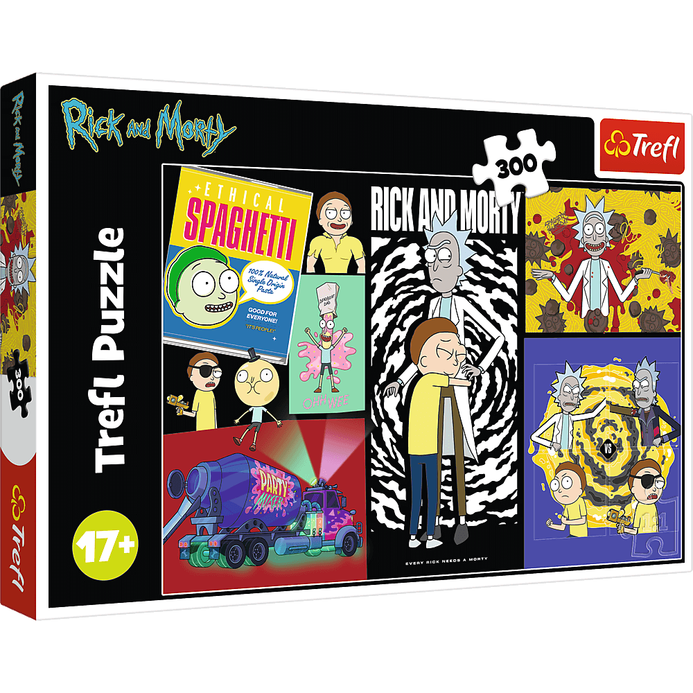 Dziwne miejsce w galaktyce to puzzle składające się z 300 elementów przedstawiające postać bajki Ricky i Morty. Po ułożeniu układanki powstanie obrazek o wymiarach 600x400 mm.
