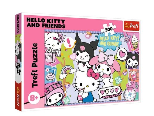 Puzzle Szalone trio z Hello Kitty to puzzle składające się z 300 elementów. Po ułożeniu układanki powstanie obrazek o wymiarach 600x400 mm.