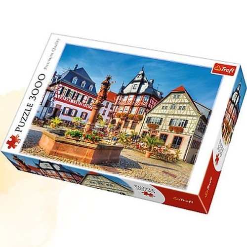 Puzzle 3000 elementów z obrazem przedstawiającym malowniczy rynek w Heppenheim. Po ułożeniu powstanie obrazek o wymiarach 116x85 cm. Wysoką jakość, nasycenie kolorów i bezpieczeństwo układania zapewnia wykorzystanie materiałów ekologicznych.