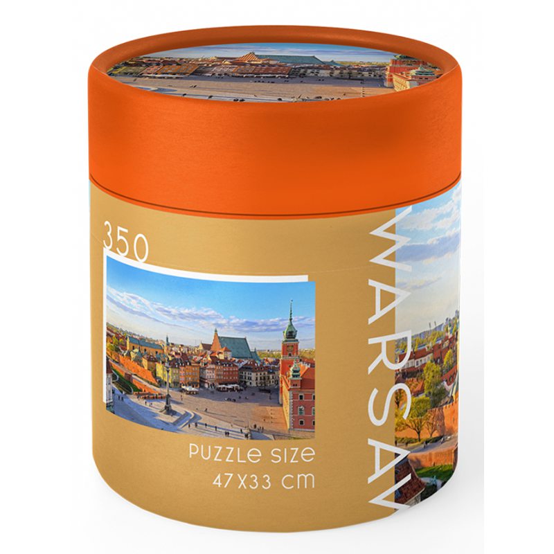 Puzzle dla młodszych i starszych składające się z 350 elementów przedstawiają panoramiczną fotografię warszawskiej Starówki. Wymiary obrazka po ułożeniu: 47.0 x 33.0 cm