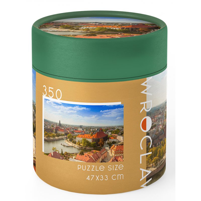Puzzle dla młodszych i starszych składające się z 350 elementów przedstawiające panoramę Wrocławia. Wymiary obrazka po ułożeniu: 47.0 x 33.0 cm