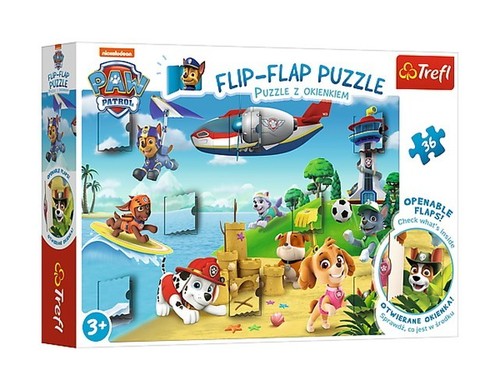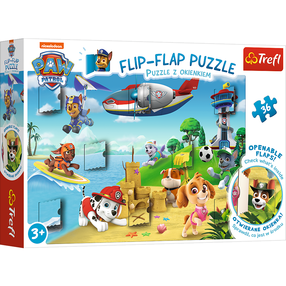 Flip-flap puzzle to duże, tematyczne układanki z otwieranymi okienkami. Po ułożeniu puzzli dziecko otwiera okienka aby przekonać się, co tak naprawdę kryje się pod nimi. Maluchy mogą też najpierw zgadywać, a dopiero potem otwierać okienka aby sprawdzić czy poprawnie zgadły.