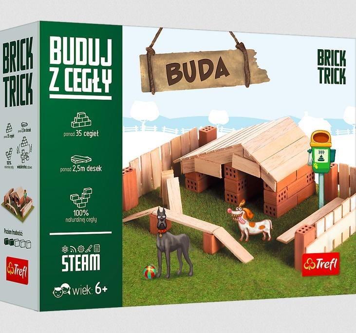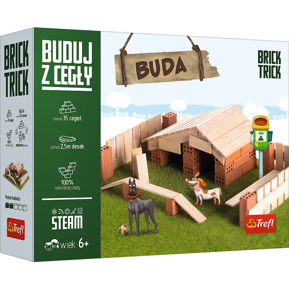 Brick Trick - Zabawa Murowana! Zostań konstruktorem, wykorzystując do budowy prawdziwe cegły i drewno! W instrukcji znajdziesz obszerne ciekawostki prosto z placu budowy. Dowiedz się, jak urozmaicić swoją konstrukcję dzięki wielu interesującym pomysłom i rozwiązaniom. Buduj według instrukcji lub użyj wyobraźni do stworzenia własnej, niepowarzalnej konstrukcji. Możesz też połączyć kilka budynków, tworząc klimat wsi, miasta lub średniowiecza.