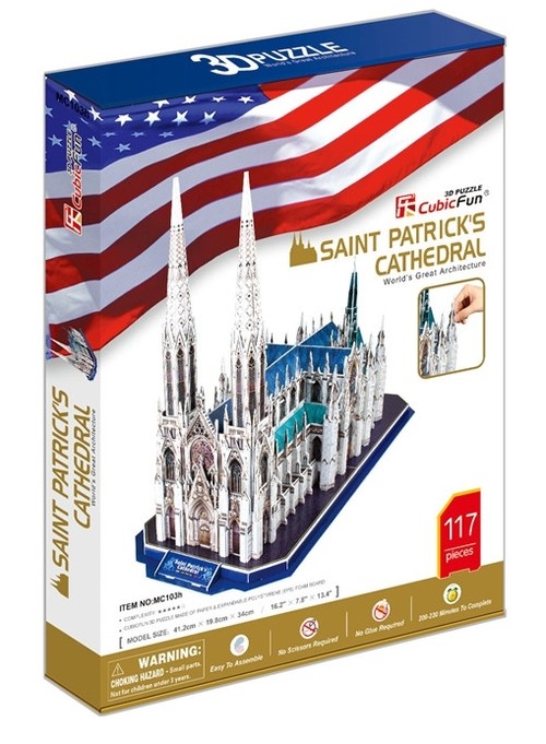 Katedra św. Patryka Cubic Fun, to puzzle 3D do samodzielnego składania. Pasjonująca zabawa dla kolekcjonerów najsłynniejszych budowli świata. Do tworzenia nie potrzeba żadnych przyborów, wystarczy wyjąć z arkusza kawałki piankowych puzzli i rozpocząć budowę. Seria zawiera w sobie najpiękniejsze i najsłynniejsze architektoniczne budowle i monumenty. Zabawka rozwija wyobraźnię przestrzenną oraz zdolności manualne u dzieci.