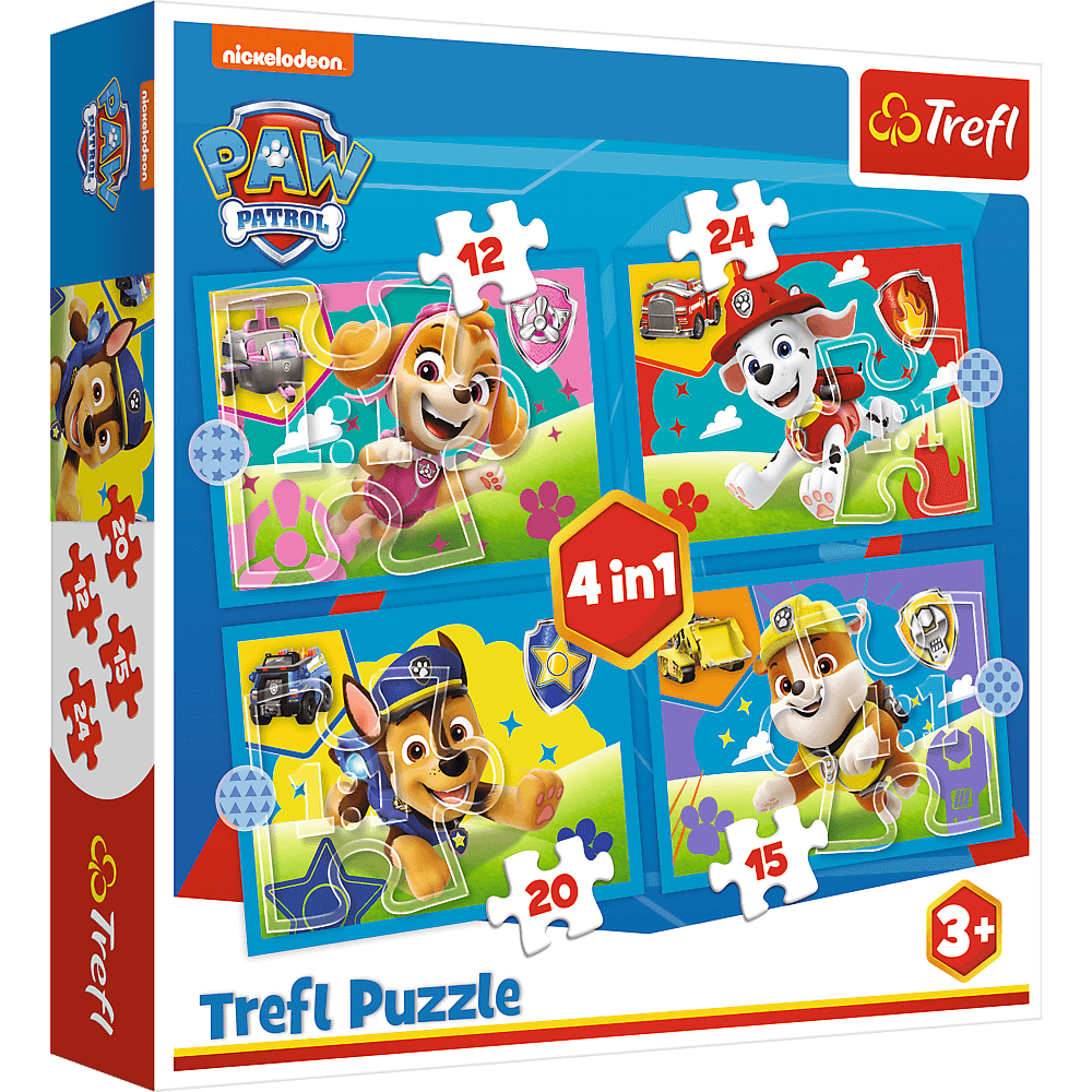 Biegnące Pieski to 4 niezależne układanki dla dzieci, zaprojektowane z myślą o małych fanach przygód bohaterów bajki Psi Patrol. Po ułożeniu puzzli powstaną 4 różne obrazki - największy o wymiarach 285x205 mm. Zróżnicowana liczba elementów pozwala na zabawę zarówno młodszym, jak i nieco starszym dzieciom.