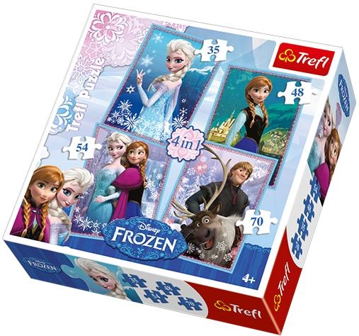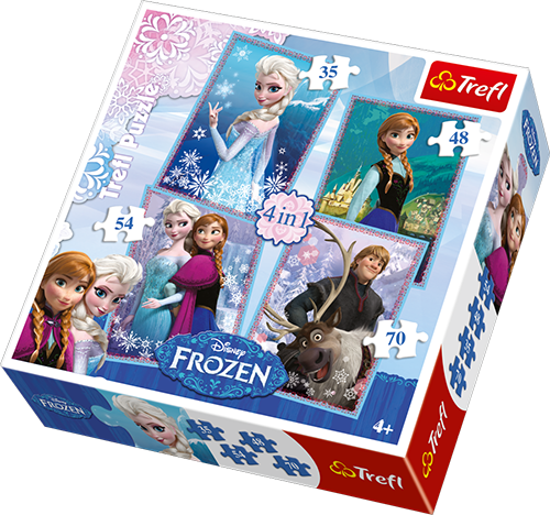 Nie jedna, nie dwie, ale aż cztery układanki zamknięte w jednym pudełku to prawdziwa gratka dla miłośników puzzli! Po ułożeniu otrzymamy cztery obrazki różnej wielkości z bohaterami filmu animowanego "Frozen". Zestaw doskonale spełnia oczekiwania rodzeństwa - każdy ułoży swój ulubiony obrazek nawet w tym samym czasie. Zróżnicowana liczba elementów pozwala na zabawę zarówno młodszym, jak i nieco starszym dzieciom. Dodatkowym urozmaiceniem zabawy może być układanie na czas, porównywanie obrazków, szukanie różnic i podobieństw. Piękna grafika w stylu Disneya i możliwość wspólnego tworzenia to powody, dla których dzieci uwielbiają układać puzzle.