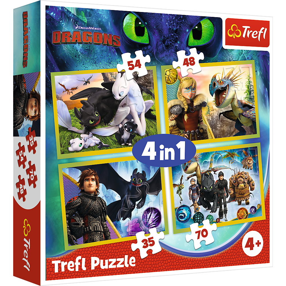 Puzzle 4w1 Jak wytresować Smoka to 4 układanki z różną ilością elementów. Puzzle są wykonane z wysokiej jakości materiałów, z dbałością o szczegóły.