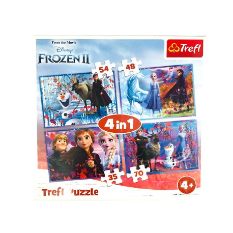 Puzzle składające się z 4 układanek z bajki Kraina Lodu 2.