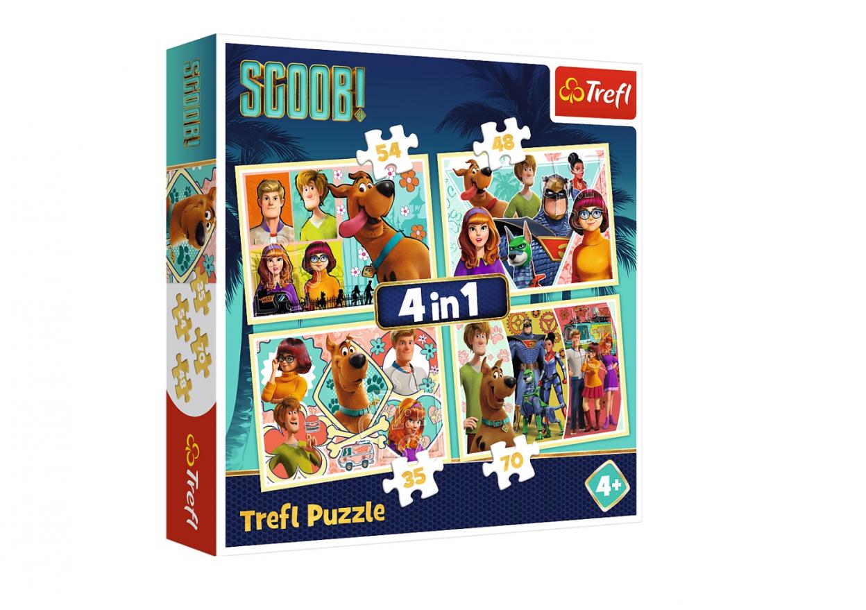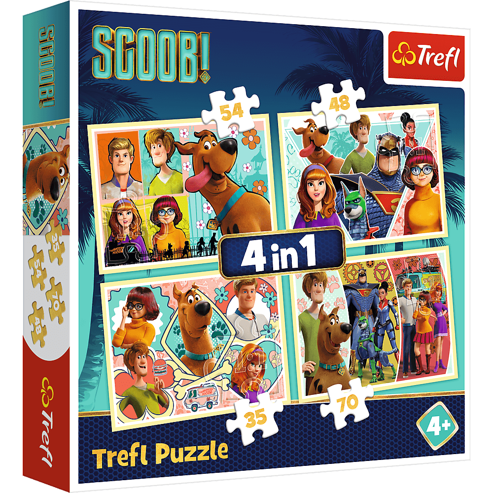 Puzzle 4w1 Scobby Doo i przyjaciele to 4 układanki z różną ilością elementów. Puzzle są wykonane z wysokiej jakości materiałów, z dbałością o szczegóły.