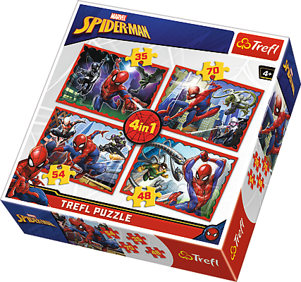 Nie jedna, nie dwie, ale aż cztery układanki zamknięte w jednym pudełku to prawdziwa gratka dla miłośników puzzli! Po ułożeniu otrzymamy cztery obrazki różnej wielkości przedstawiającymi Spider-mana i pozostałe postacie filmu opartego na kultowym komiksie. Zestaw doskonale spełnia oczekiwania rodzeństwa - każdy ułoży swój ulubiony obrazek nawet w tym samym czasie. Zróżnicowana liczba elementów pozwala na zabawę zarówno młodszym, jak i nieco starszym dzieciom. Dodatkowym urozmaiceniem zabawy może być układanie na czas, porównywanie obrazków, szukanie różnic i podobieństw.