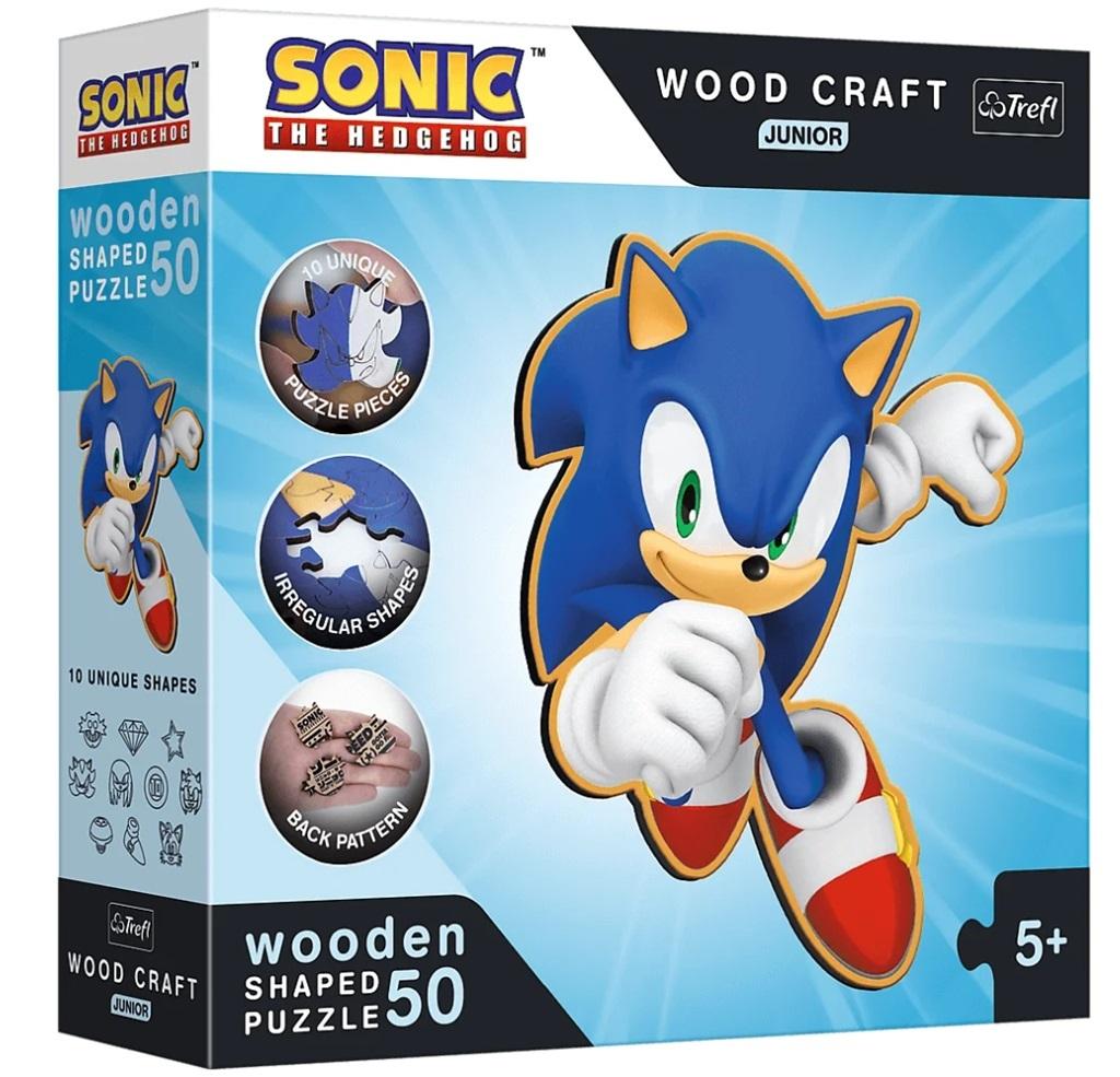 Puzzle drewniane Sprytny Sonic to wyjątkowa propozycja dla miłośników Sonica. Te klimatyczne puzzle składają się z 50 elementów, w tym z 10 unikatowych figurek puzzlowych nawiązujących do świata Sonica. Układanka została wykonana z drewna, a opakowanie z przyjaznej dla środowiska tektury.