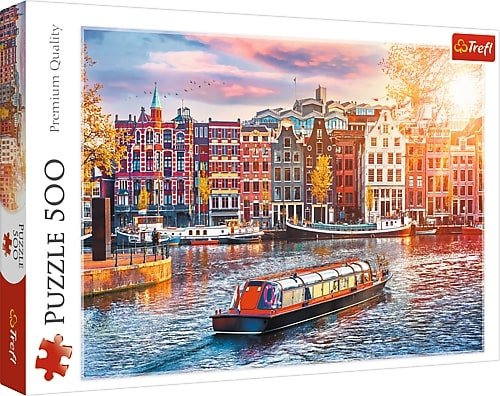 Amsterdam Holandia to puzzle 500 elementów przedstawiające piękny widok na miasto.