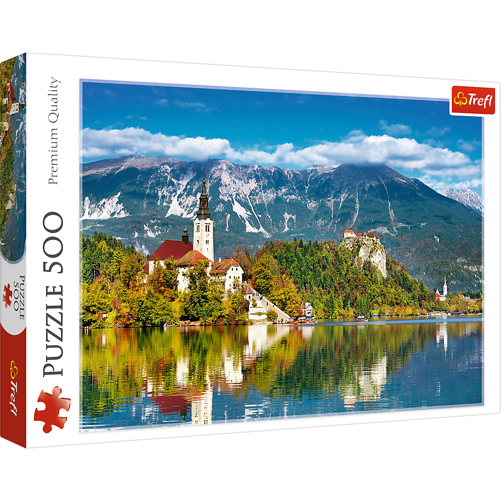 Puzzle 500 elementów ze zdjęciem alpejskiej miejscowości Bled w Słowenii. Po ułożeniu powstanie obrazek o wymiarach 48x34 cm. Wysoką jakość, nasycenie kolorów i bezpieczeństwo układania zapewnia kalandrowany papier odbijający światło, pokryty ekologicznymi farbami spożywczymi.