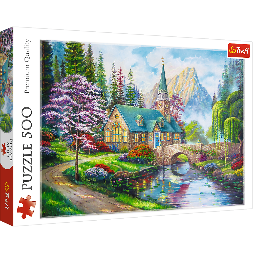 Puzzle 500 elementów przedstawiające leśny krajobraz. Po ułożeniu powstanie obrazek o wymiarach 48x34 cm. Wysoką jakość, nasycenie kolorów i bezpieczeństwo układania zapewnia kalandrowany papier odbijający światło, pokryty ekologicznymi farbami spożywczymi.
