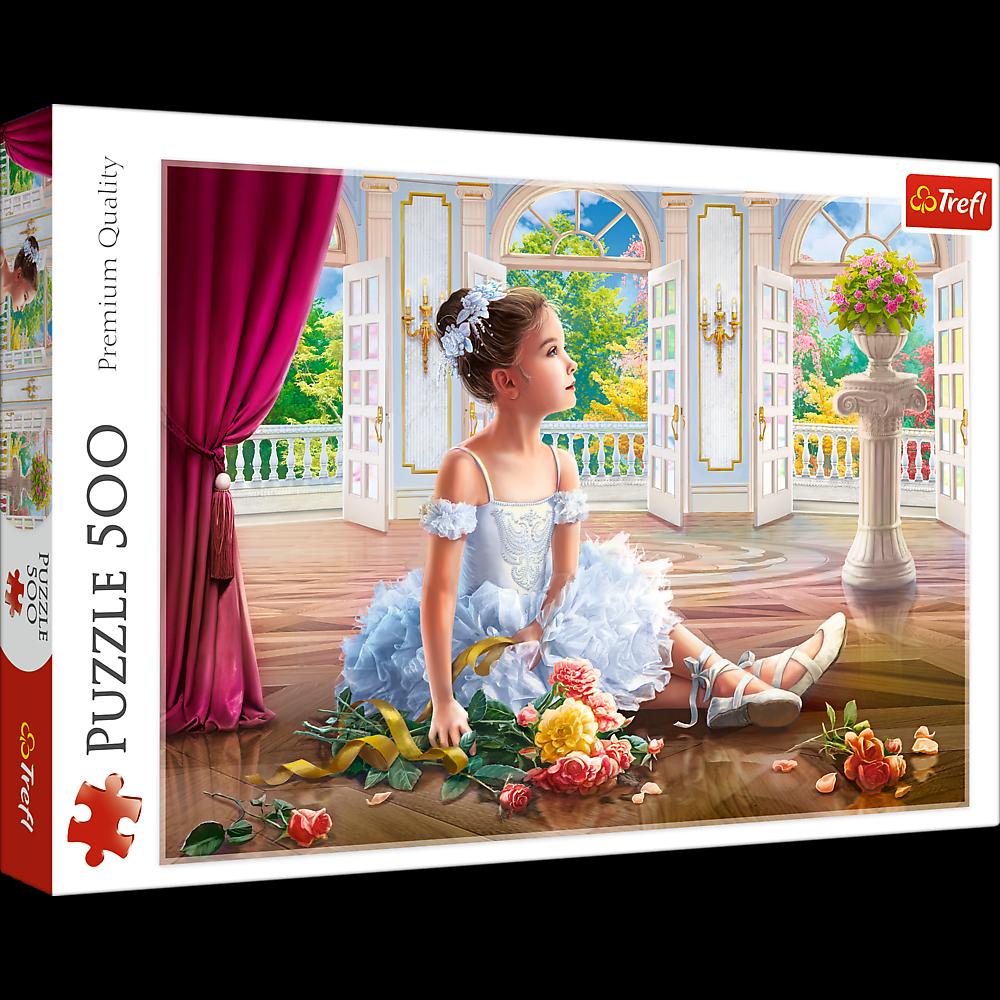Puzzle 1500 elementów z przedstawiające baletnicę. Po ułożeniu powstanie obrazek o wymiarach 48 x 34 cm. Wysoką jakość, nasycenie kolorów i bezpieczeństwo układania zapewnia wykorzystanie materiałów ekologicznych.